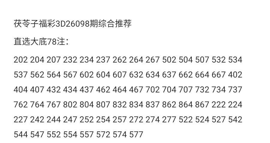 茯苓子福彩3D26098期综合分析