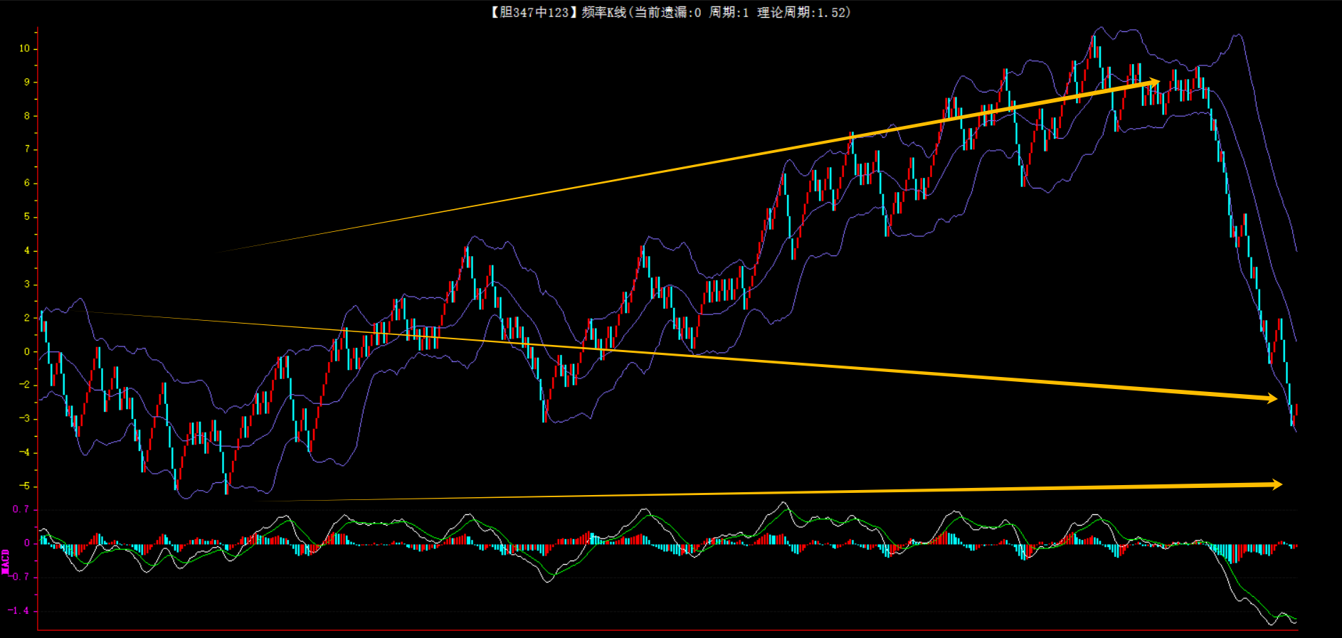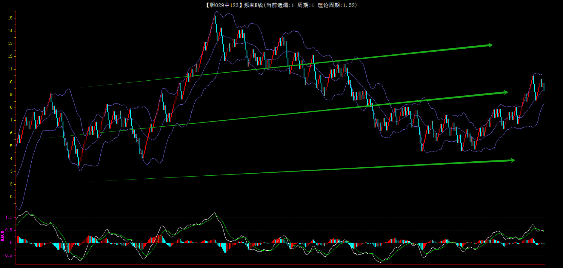 整体趋势上行,上边沿线趋势向上,下边沿趋势也是向上,节点震荡,当前遗漏1期,本期关注。
