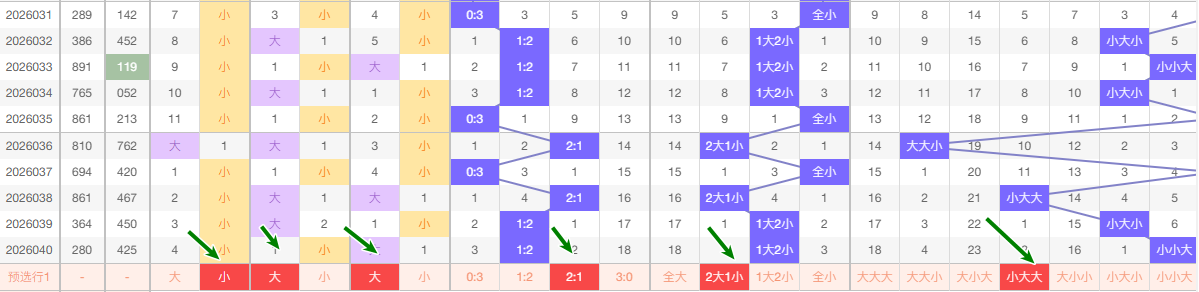 最近的5期当中十位大数出现的频次3次 小数出现2次 ,趋势平和 本期看好走小