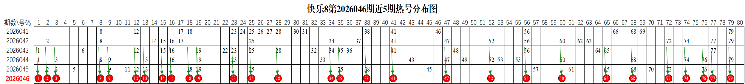 快乐8第2026046期多条件统计分析组号(上期对1组选9中6)