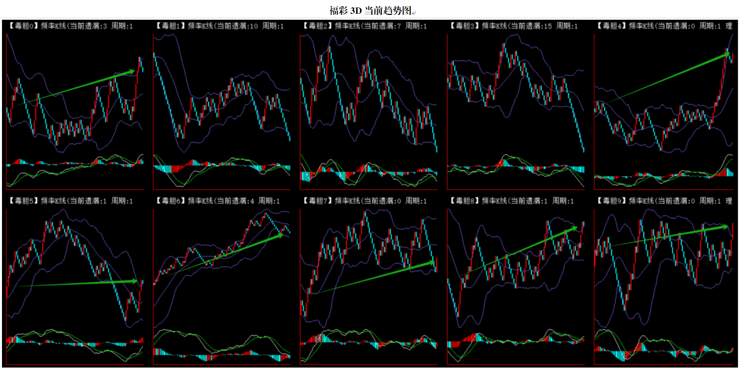 整体趋势上行,上边沿线趋势向上,下边沿趋势也是向上,节点震荡,当前连开7期,本期关注。