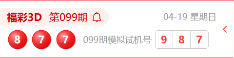 福彩3D第099期开奖结果为:877