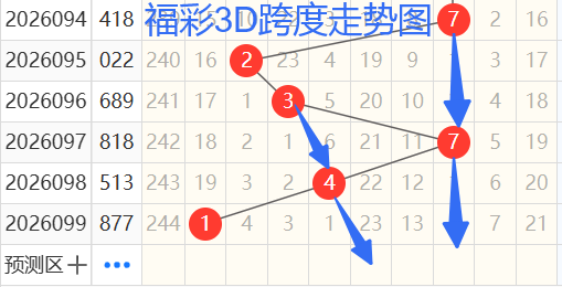 2)我们来看跨度:还是以95期——99期为例,如图依次是23741跨度,按照路数转换关系来看,那么跨度我们暂定258369跨 ,本期个人比较看好2 5 7跨。