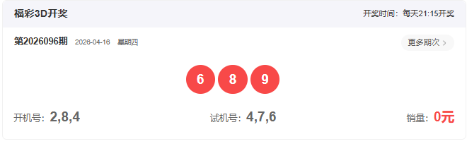 开奖号码:689