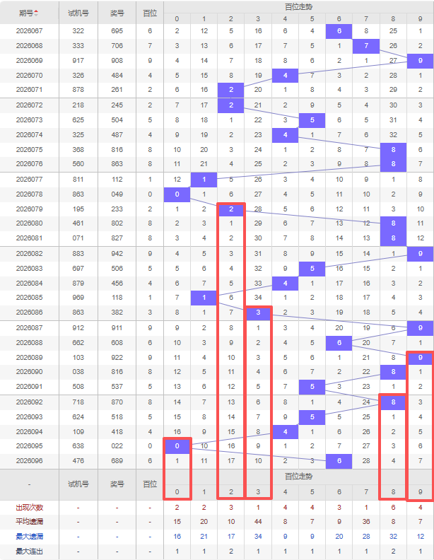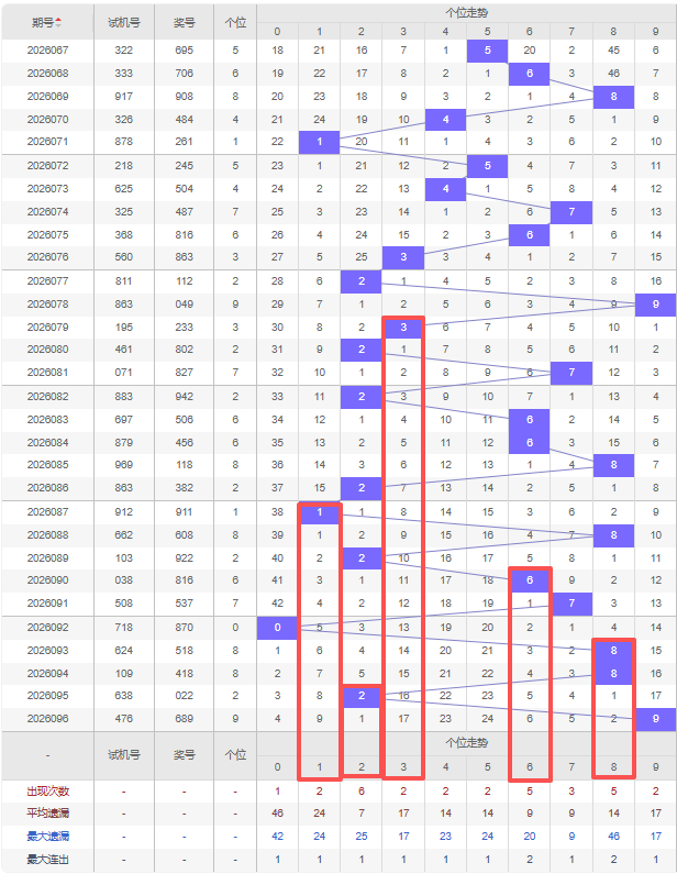 2026097期五码定位(百位、十位、个位):