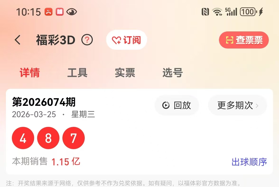 福彩3D2026第074回顾: