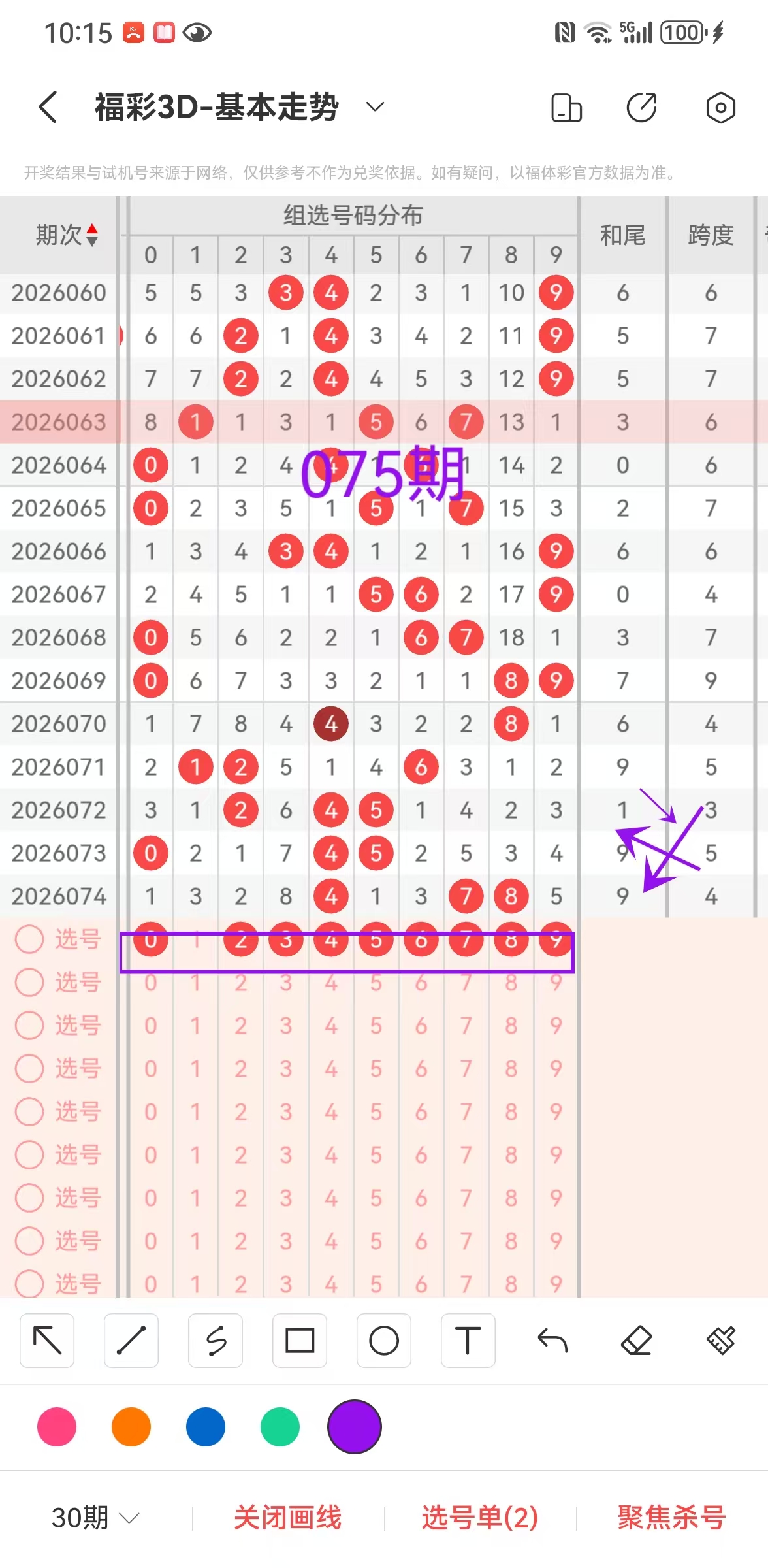 福彩3D75期,专区再次命中金蛋双胆,4码567码,15期中5期直10期组,加油