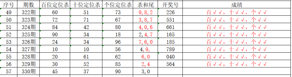 金莱3D第330期:上期金胆推荐5且焊在百位对,单挑574开564错失直选