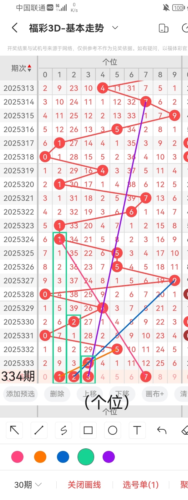 通过以上对上期的简单回顾,下面进入2025334期(下面简称本期)的选号分析: