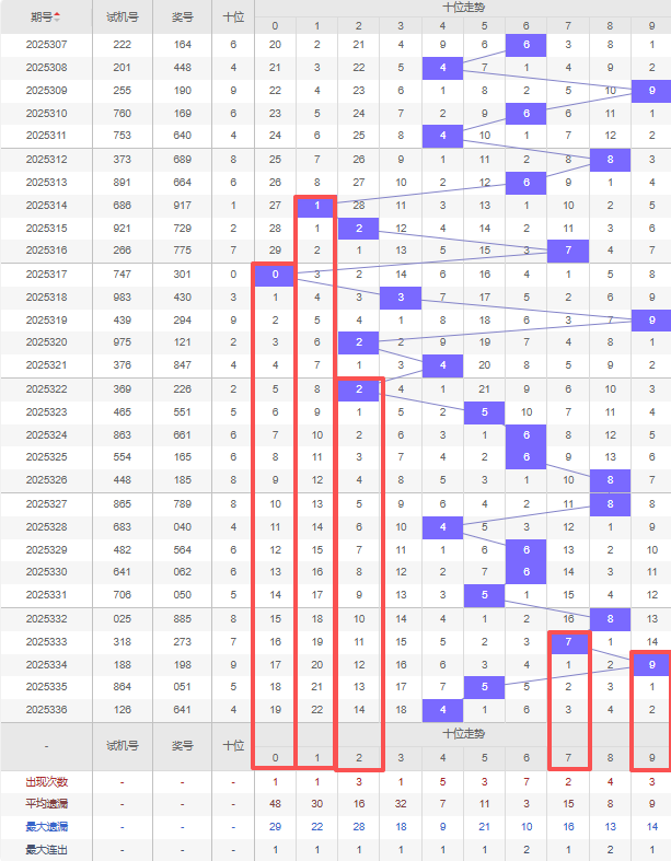 上期十位:4,近10期十位出号 :8 4 6 6 5 8 7 9 5 4,最近10期大小变化分别:大小大大小大大大大小,奇偶变化分别:偶偶偶偶奇偶奇奇奇偶,质合变化分别:合合合合质合质合质合,根据近10期的规律本期综上所述十位出号推荐5个号码:0 1 2 7 9。