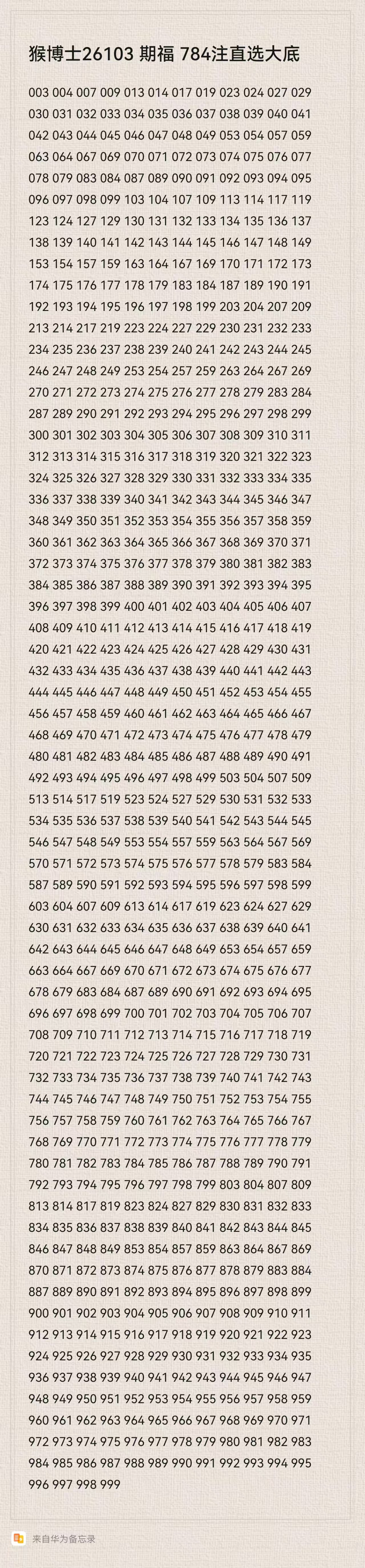 猴博士26103期福784注直选大底:(可以当母底用,然后进行缩水)