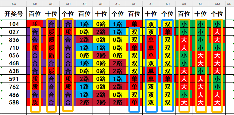 1,目前开奖号百位号码球10天当中,质数(12357)开出了4次,合数(04689)开出了6次,本期重点关注开奖号百位号码球质数的回补!