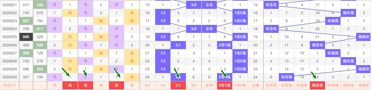 (二)、奇偶分析 奇数 13579 偶数 02468 在这5期 数据中 奇数出现7次 偶数出现 8次 从昨天出号来看偶数占优, 本期看好偶数有号 看好 奇偶偶奇 奇偶奇
