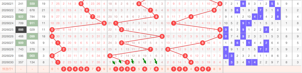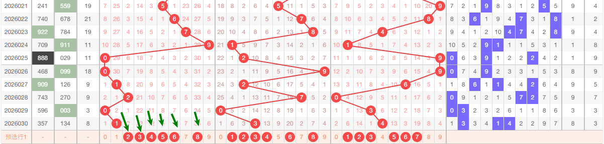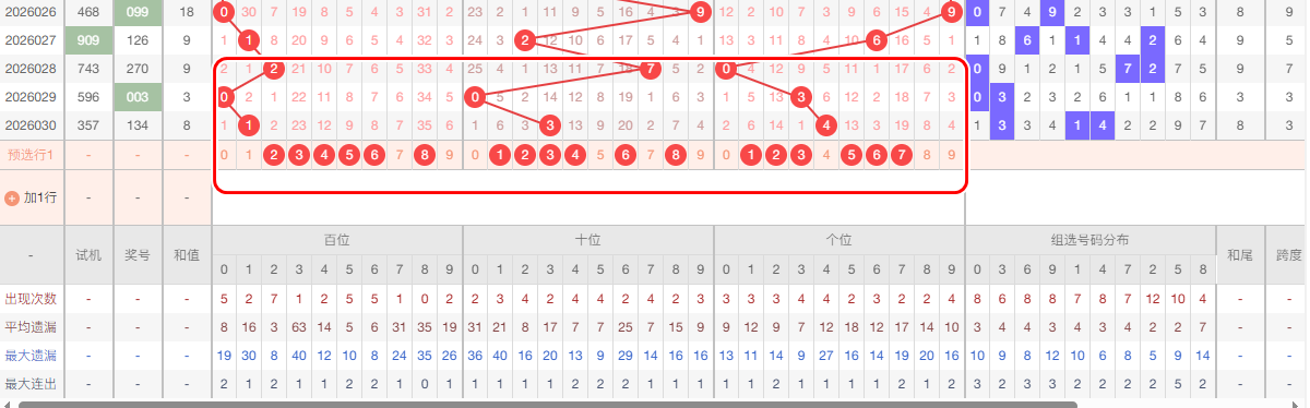 上期十位开出3,本区与上期的跨度为3,本期我们重点关注14,本期十位推荐关注:123468
