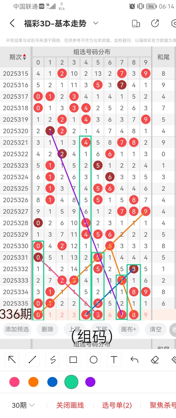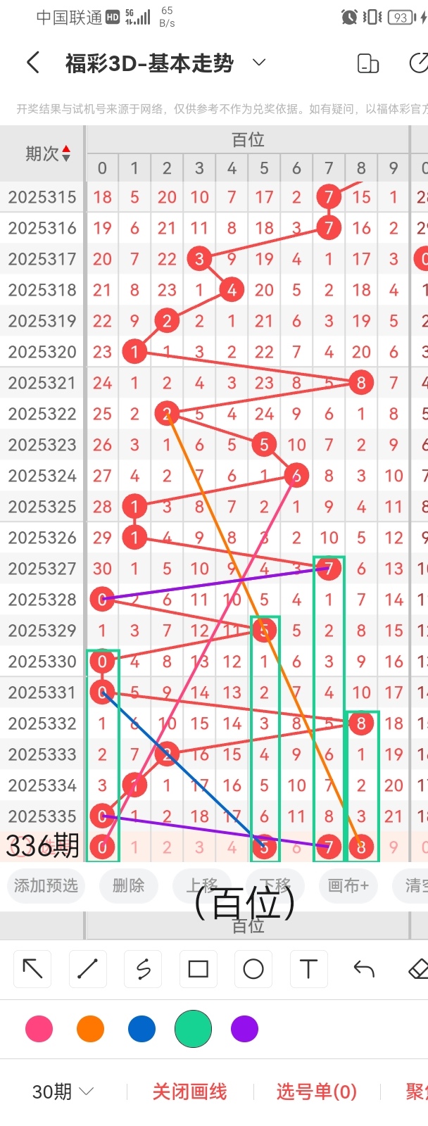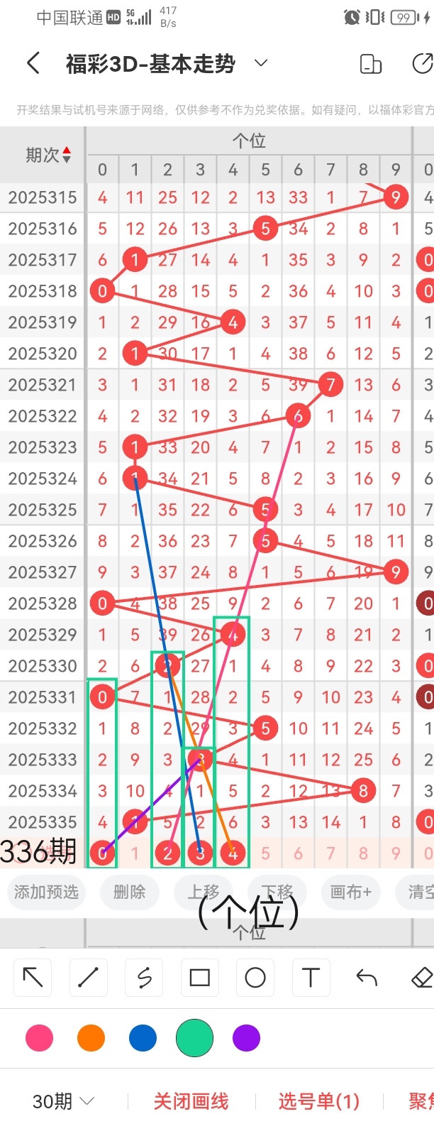 通过以上对上期的简单回顾,下面进入2025336期(下面简称本期)的选号分析: