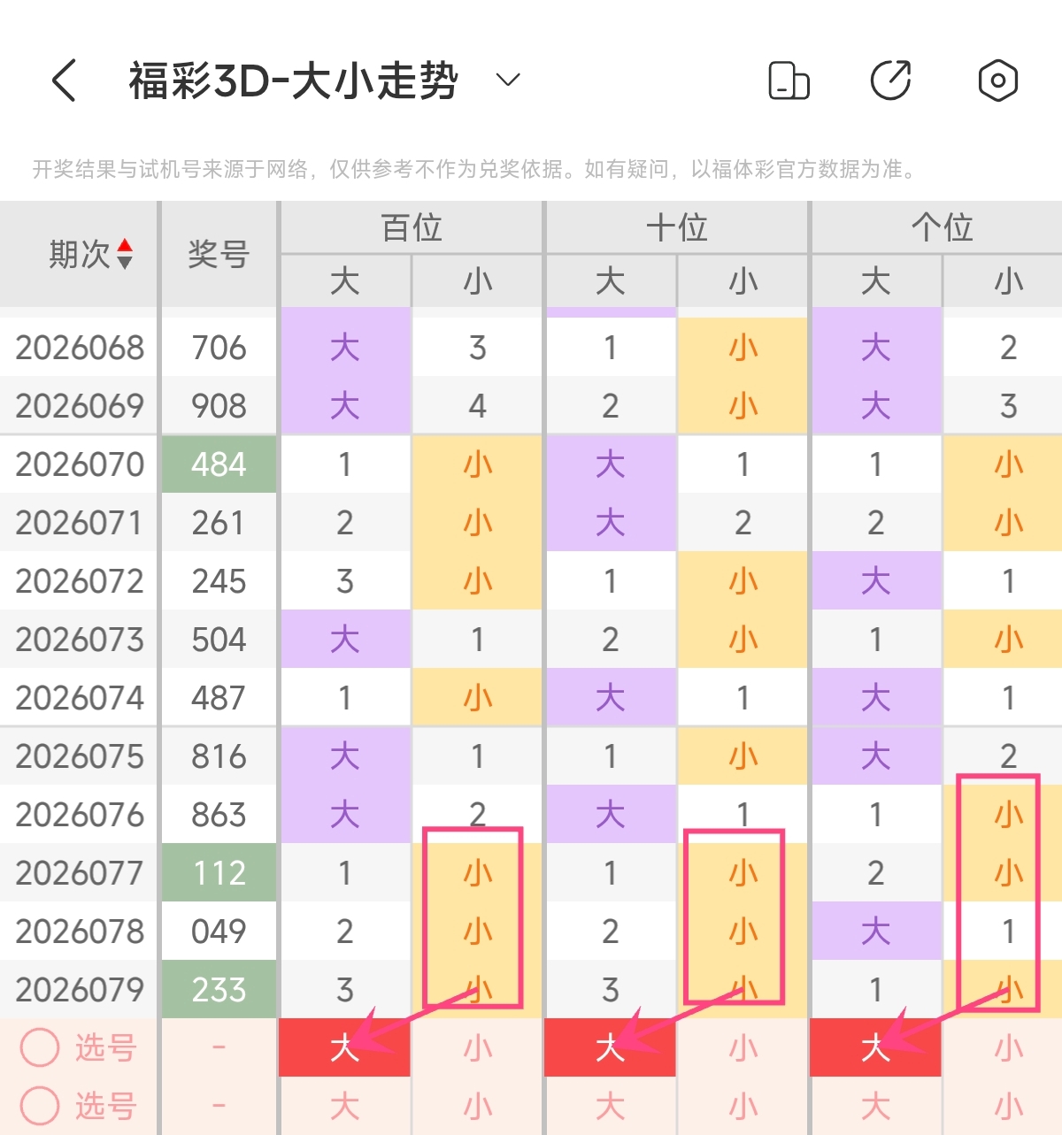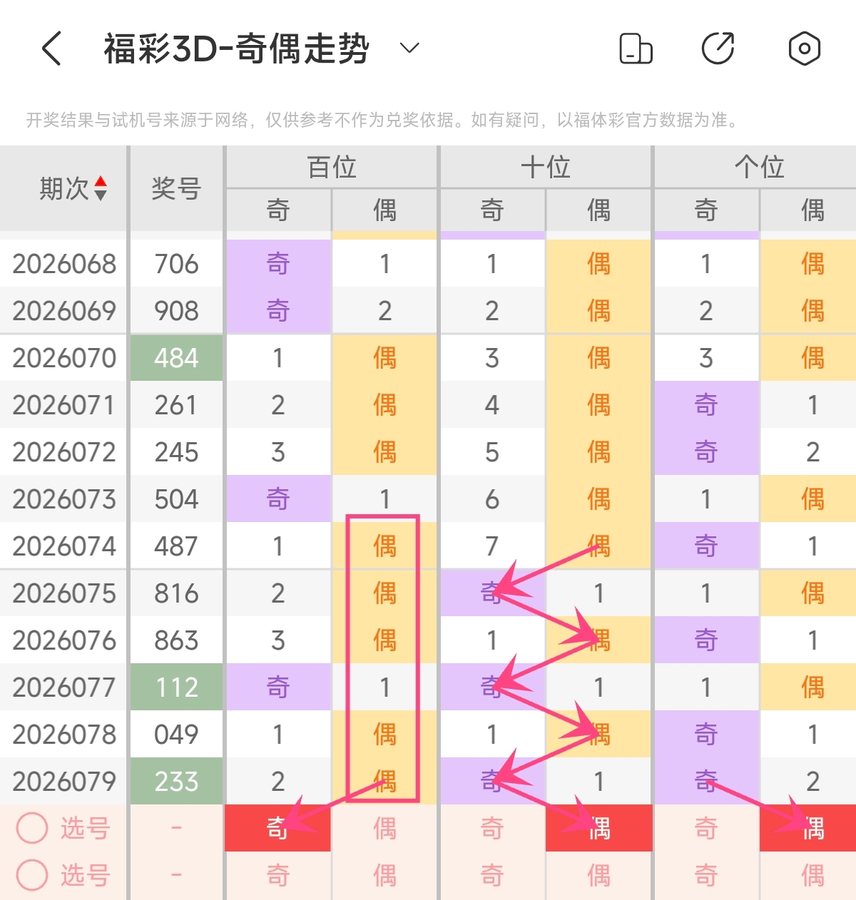 首先让我们回顾一下上期福彩3D第2026079期开奖号码为233,为组三形态,大小比为0:3,奇偶比为2:1,跨度为1,和值为8。