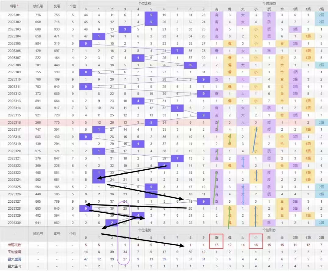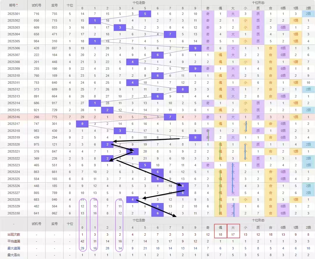 福彩3D第2025331期十位建议分析奇数偶数概率,如图所示近15期开出奇数号4期偶数号11期,开出偶数号的概率是开出奇数号概率的2倍多,上七期开出偶数号那么本期开出奇数号的概率较大建议选择遗漏期数较大的奇数号。建议杀号定在所有偶数号,但偶数号0号都已经遗漏了10期以上建议开出防冷号开。