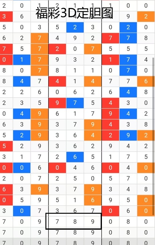 那么今天的定胆图的话,可以看到上期的367这个位置遗漏了,那本期要考虑这个位置的789会有一个胆码,所以说这位置还是比较看好78的一个胆码。