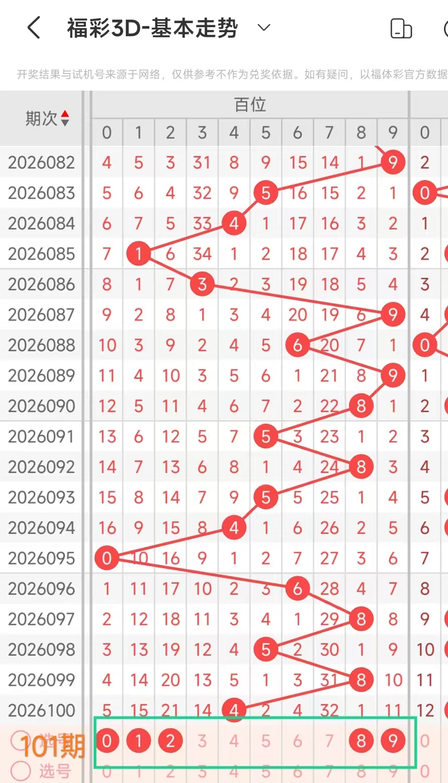 通过APP截取前100期的数据得到