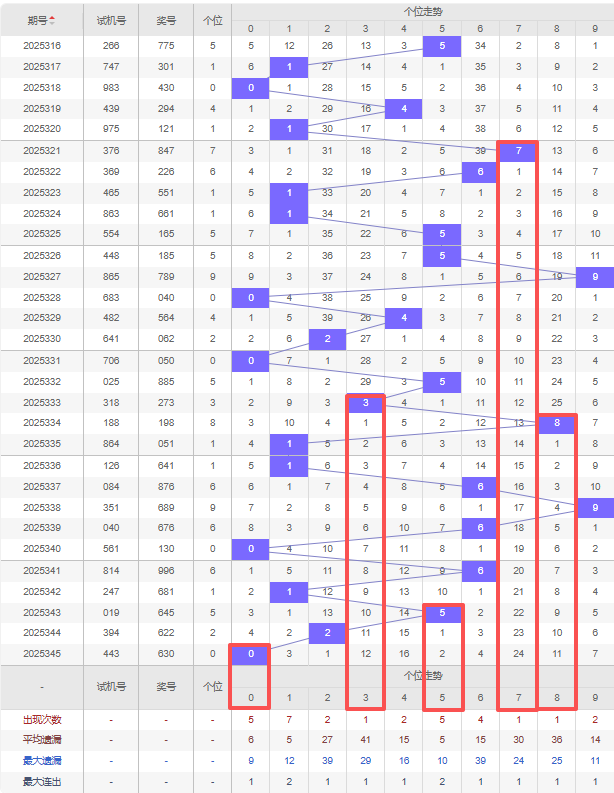 上期个位:0,近10期个位出号:1 6 9 6 0 6 1 5 2 0。最近10期大小变化分别:小大大大小大小大小小,奇偶变化分别:奇偶奇偶偶偶奇奇偶偶,质合变化分别:质合合合合合质质质合,根据近10期规律本期综上所述个位出号推荐5个号码:0 3 5 7 8。