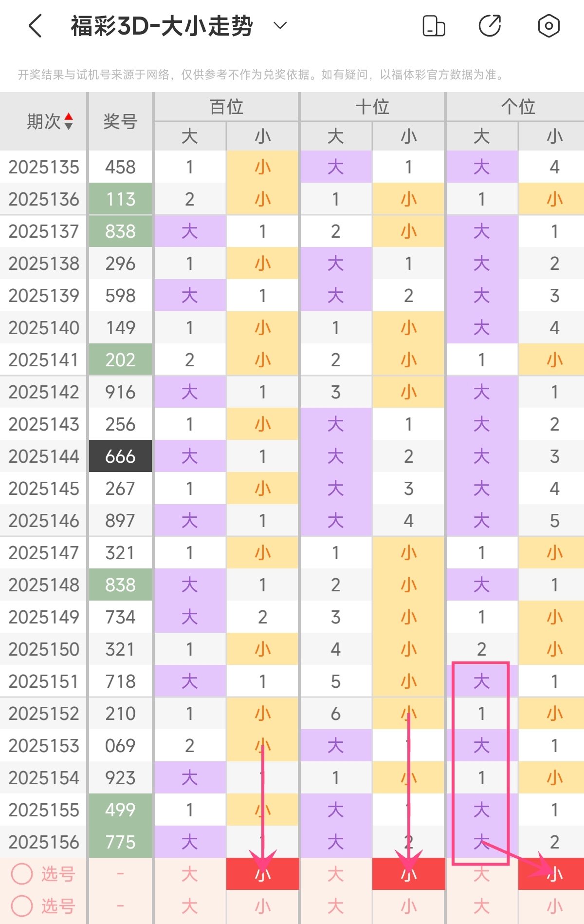 首先让我们回顾一下上期福彩3D第2025156期开奖号码为775,为组三形态,大小比为3:0,奇偶比为3:0,和值为19,跨度为2。