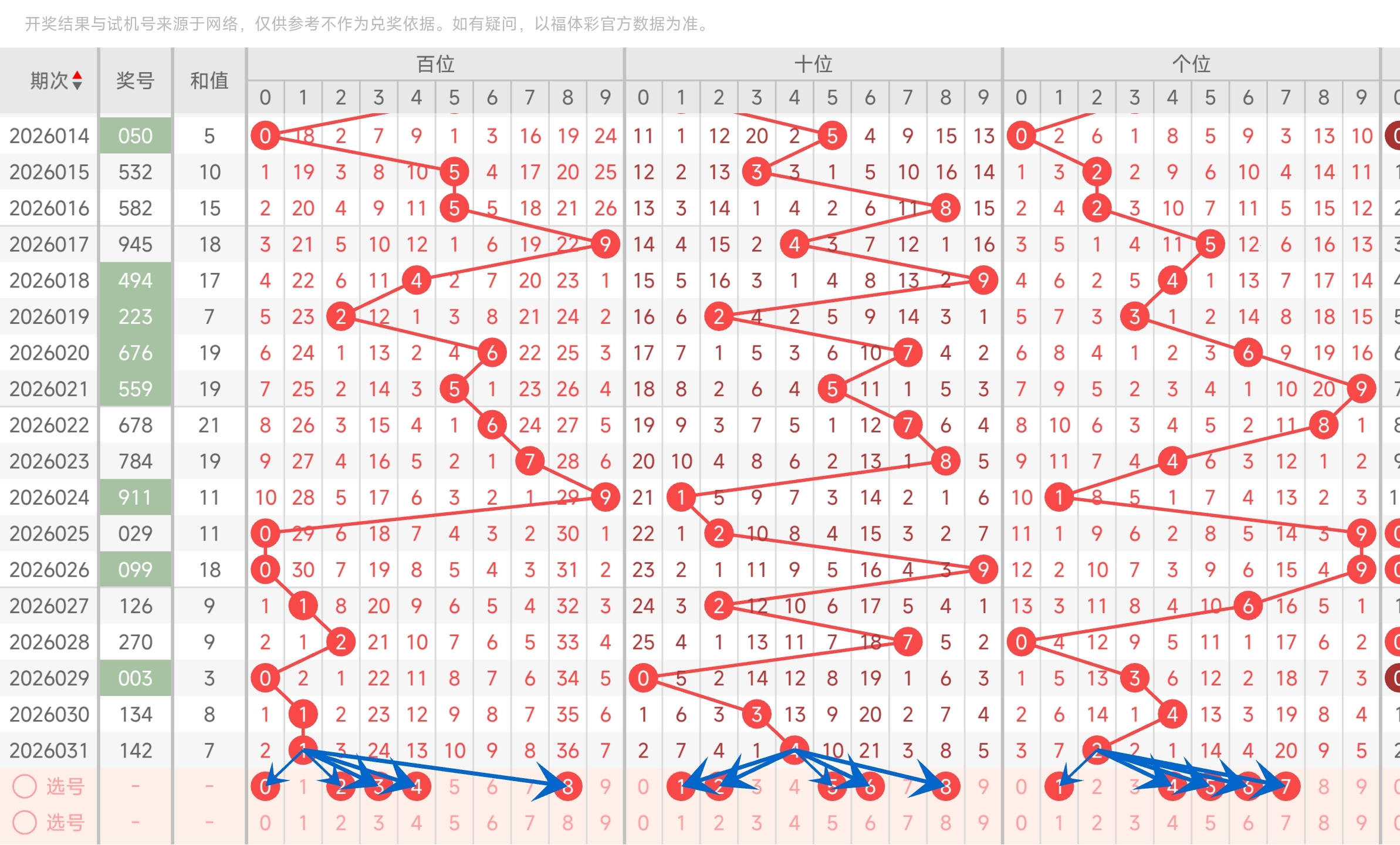 第2026023期福彩3D分析文章,5码定位命中784,6码复式命中784。