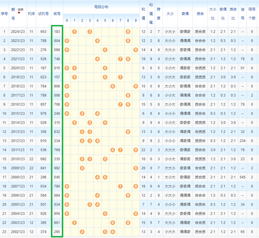 通过近期研究和测试金莱对于3D又有了新的选号技巧,该方法结合往年同期分析法实战效果不错,值得借鉴。