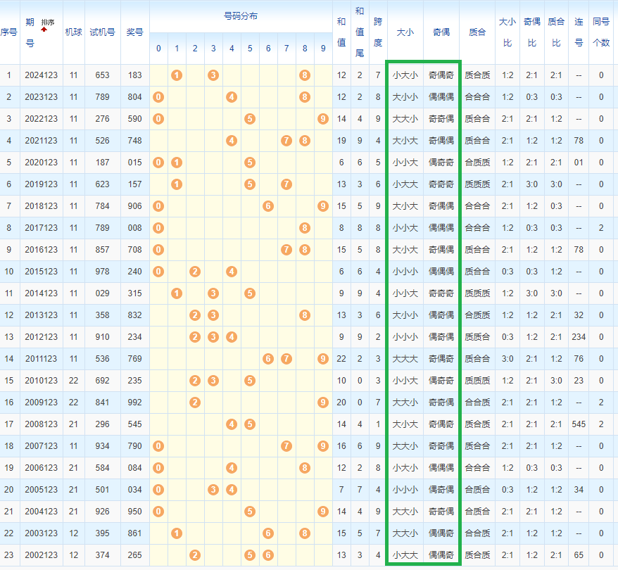 这23期大小组合:本期可以考虑2大1小组合,如大大小等。奇偶组合:本期可以考虑1奇2偶组合,如偶奇偶。