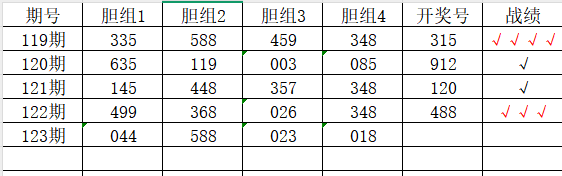 ①4组单独胆码:(4组胆码理论每组都下一个胆码)
