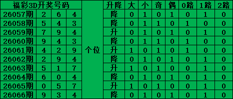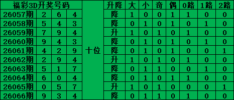 综上所述,福彩3D第2026067期号码推荐: