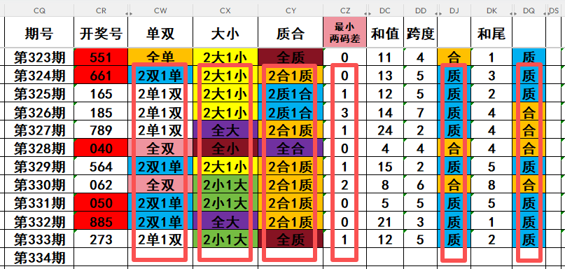 3,最近10天当中,两质一合开出2次,两合一质开出6次,全质数开出1次,全合数开出1次。近期需重点关注开奖号码两质一合的回补!