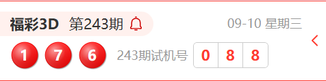 福彩3D第243期开奖结果为:176