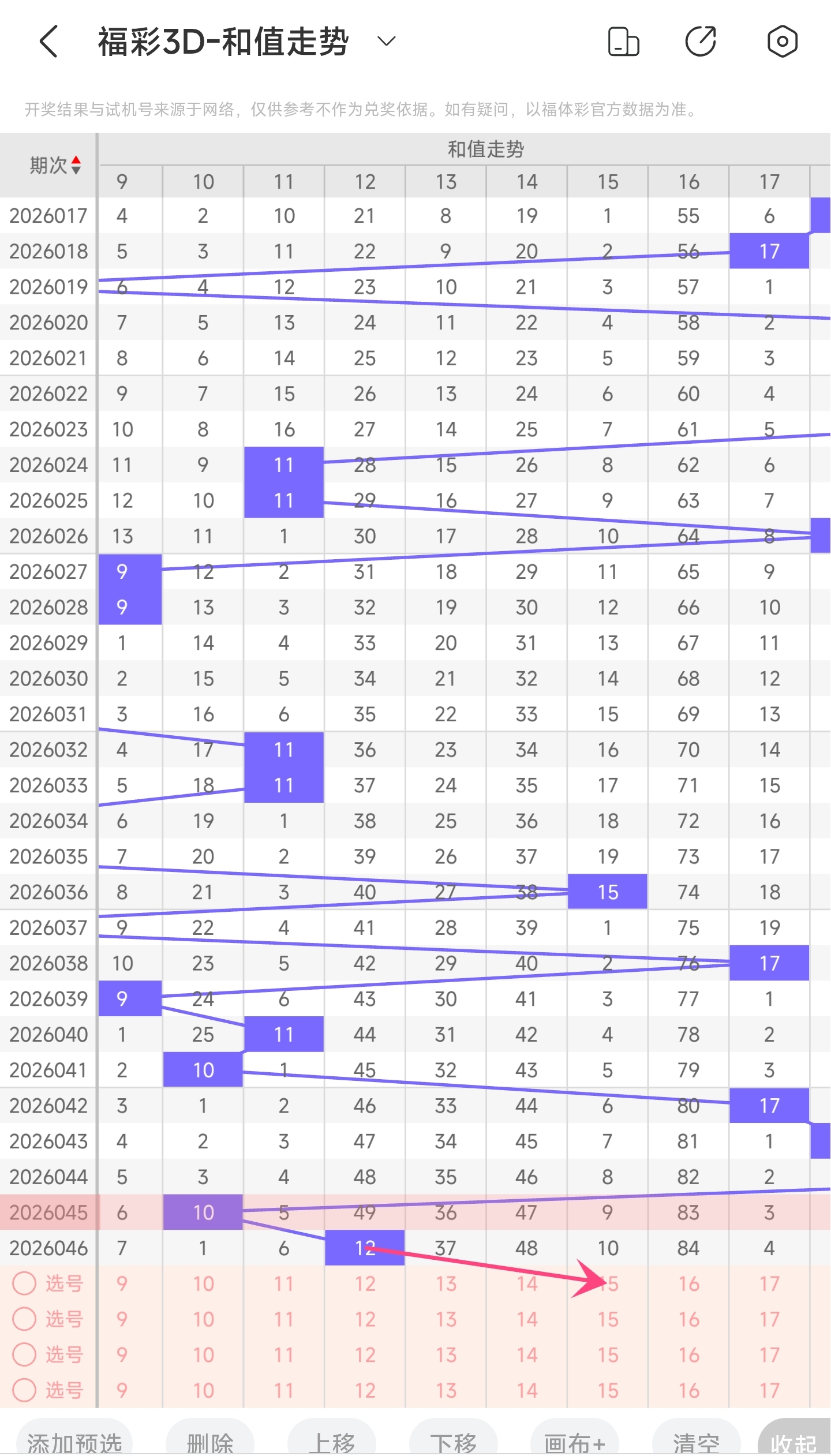 一、通过和值走势分析: