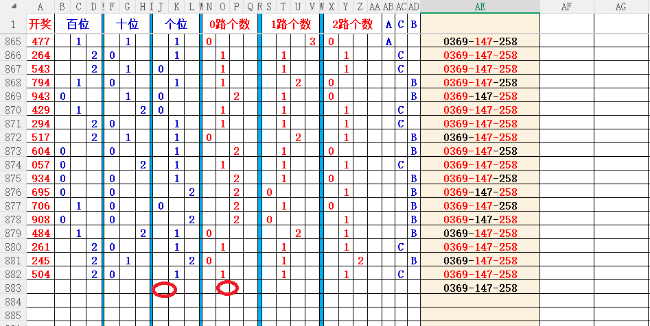 如上图2,012路分析01路尾走比较好,关注0369147尾;