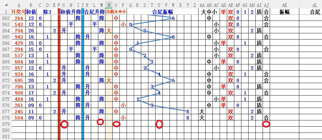 和尾:开奖号码和值的个位数,范围为0-9。示例:和值15的和尾为5。