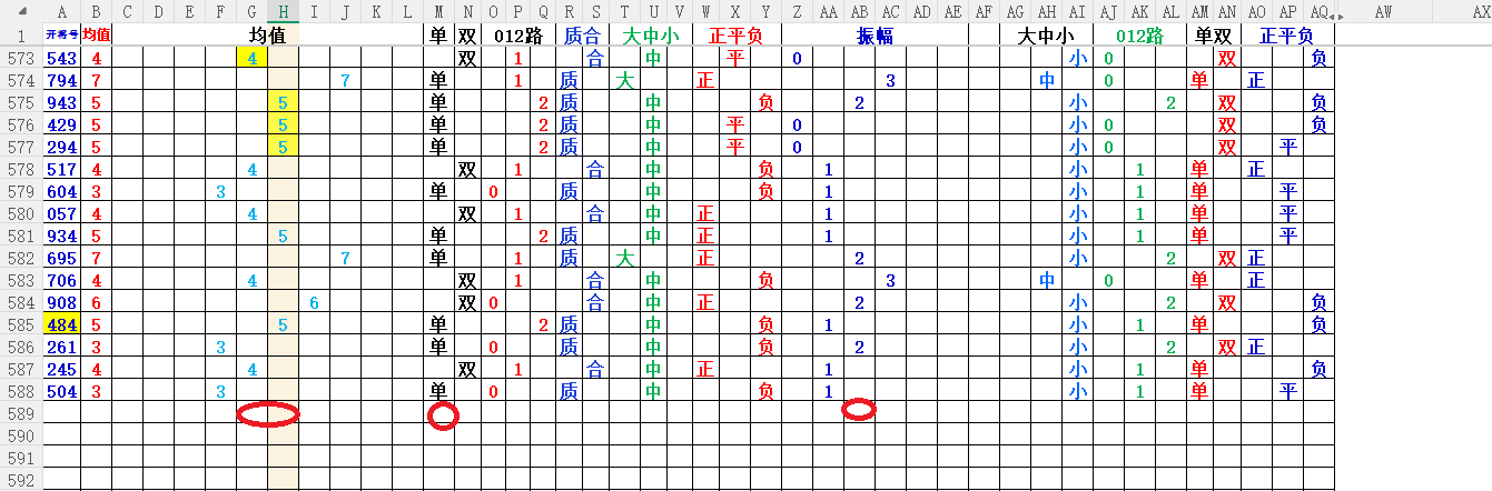 均值:就是开奖号每各数的总和除3,然后得到的余数,如果不够整除可以+1,-1,直到被整除得的数就是均值