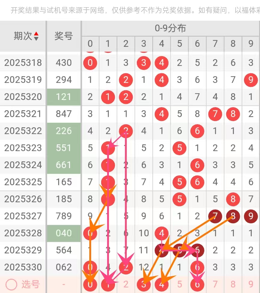 理由:数字0在近30期出现8次,频率为8.9%,处于中游水平。但近期活跃度显著提升,在2025-12-10的“0,6,2”和2025-12-08的“0,4,0”中均有出现,后者更以双0形态展示。短期内的重复出现表明数字0可能受到近期开奖趋势影响,具备连续性特征。作为“海青胆”,它象征如海洋般深广的稳定性,既不过热也不过冷,在平衡中寻找机会,适合作为辅助胆码,期待其稳健表现。