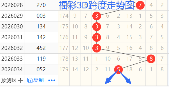 依次是33385跨度,按照路数转换关系来看,那么跨度我们暂定369147跨 ,本期个人比较看好4 6 7跨。