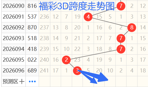 依次是87723跨度,按照路数转换关系来看,那么跨度我们暂定258369跨 ,本期个人比较看好5 6跨。