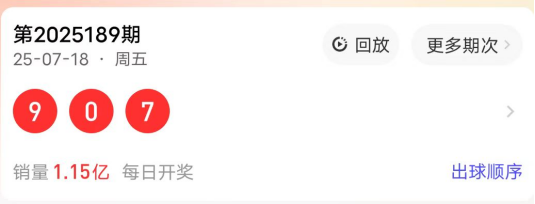 2025189期开奖号码为907,奇偶值为2奇1偶;大小值为2大1小;012路走势为001路;跨度为9跨;和值16点;组六形态。