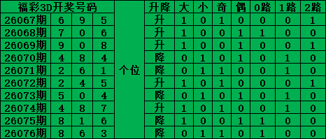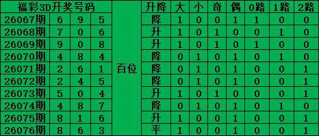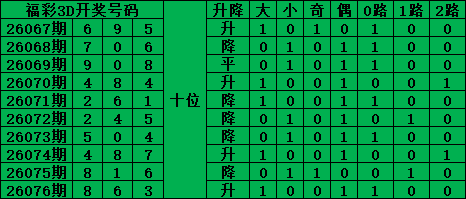 福彩3D是从0-9每期开出3个号码,截至2026075期三个位置最大遗漏的是27期的:个位的0号。