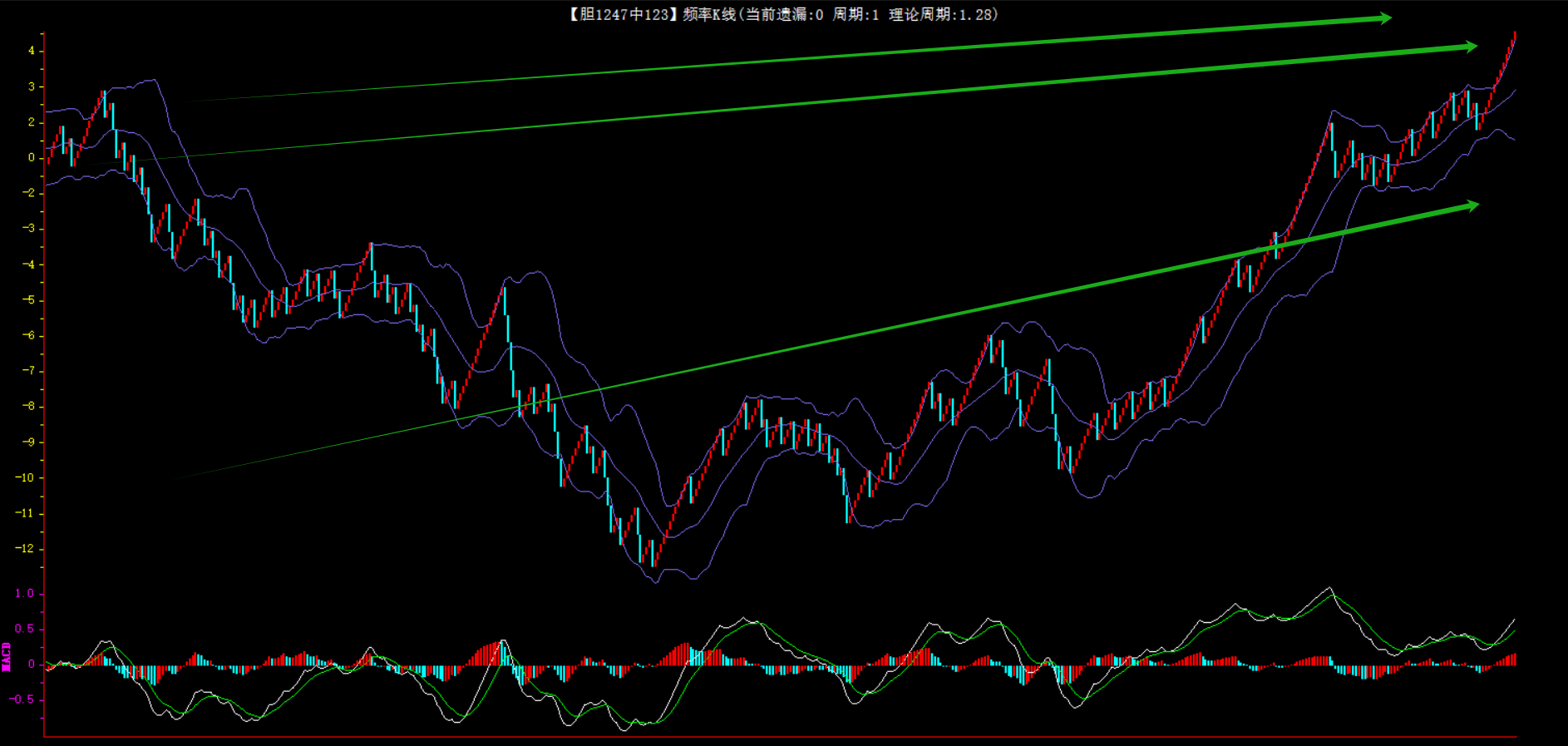 整体趋势上行,上边沿线趋势向上,下边沿趋势也是向上,节点震荡,当前开1期,本期关注。