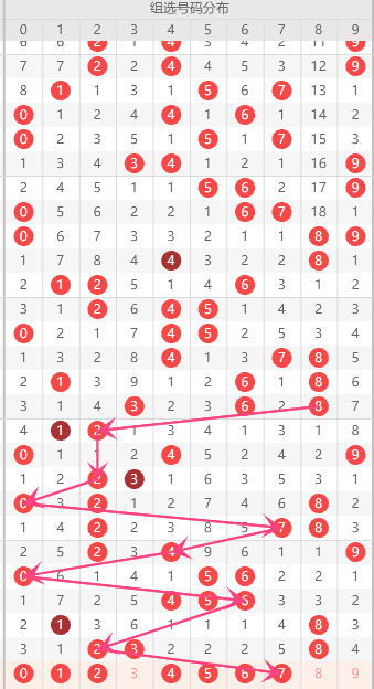 结合近10期开奖结果分析,号码:1-2-4-8出现了4次以上,表现较为活跃,根据热码继续走热的特性,可将它们列为热号重点,本期可以关注继续出球。再结合组选走势图分析值得重点关注!综合以上冷热码走势0-1-2-4-5-6-7