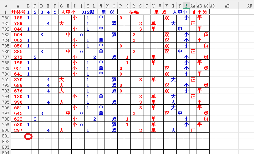 如上图56,大中小分析,中号3456出胆码,最低1个胆码,重点34