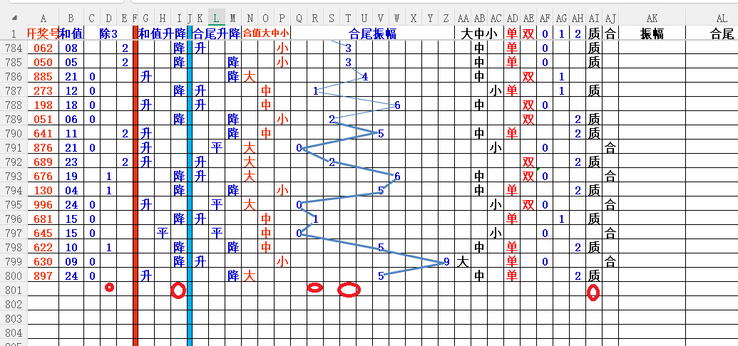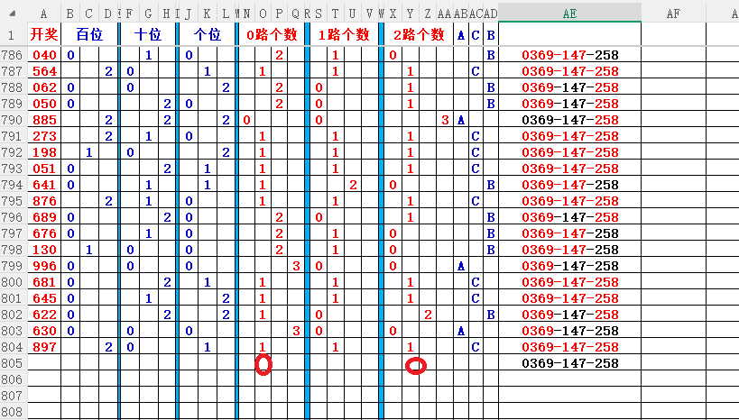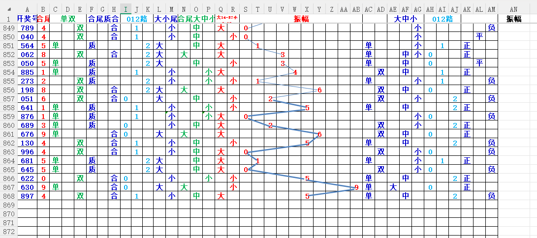 如上图2,012路分析01路尾走比较好,关注0369147尾;