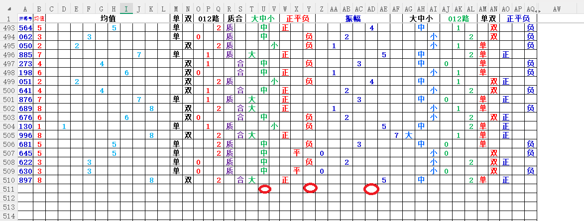 均值:就是开奖号每各数的总和除3,然后得到的余数,如果不够整除可以+1,-1,直到被整除得的数就是均值