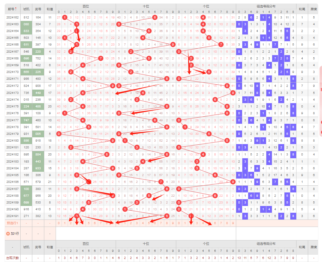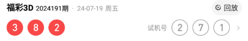 上期简单回顾:上期开382,重复上期号码0个,2小1大,1奇2偶,跨度6,和值13,试机号重复1个