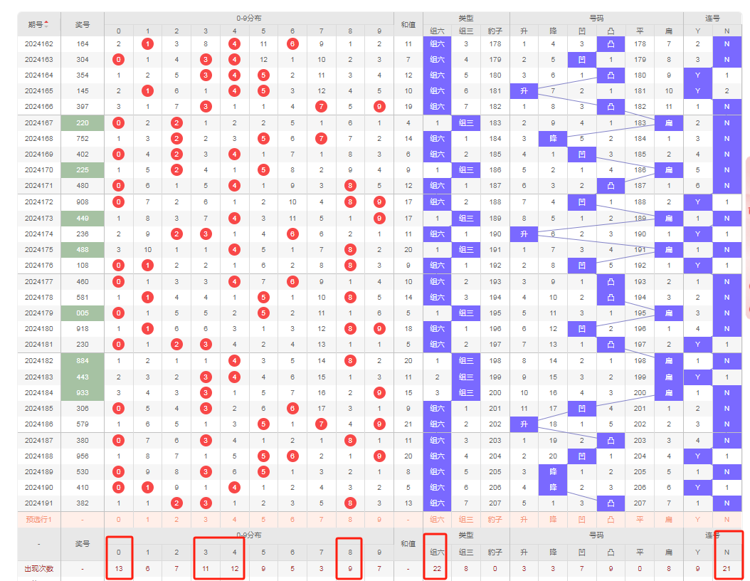 上期个位开2,个位今天建议关注0路号码0369防2直落