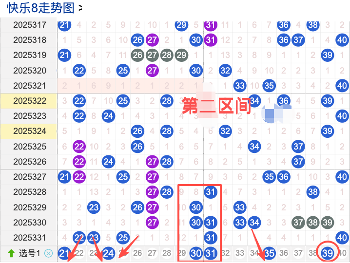 上期二区开出5个奖号(22.23.25.31.40)上期回顾二区开出5个奖号二区间在上期落位同比前期的话呈现了一个递的落位趋势,先来看本期号码24整体活跃度较一般,在近 30 期里有一定的间歇性出现,不是每期都开,整体走势不是很稳定。号码30近期热度较,间隔性,说明其在当前阶段活跃度较注意防守。号码35近期活跃度一般好,有一定的间歇性近期整体走势相对平稳没有特别明显的冷热趋势变化,号码3930期内活跃度较,没有明显的连续出现形态走势,整体表现比较动荡是很稳定。