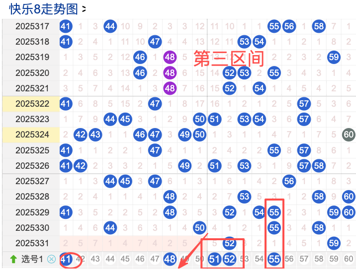 三区间开出了2个奖号(52.59)上期回顾三区开出2个奖号上期的三区间的奖号数量呈现一个递的形态,4头回补1个,本期先来看号码41近期出现频率相对来说是很稳定。偶尔有时间隔期数也是很长,说明其在近期的开奖中较的,号码48在近 30 期内出现次数相对是稳定的号码,近期的活跃度也是较。号码52有一定的间歇性,通常间隔5-3期会出现一次,没有明显的连续出现态势,走势相对较稳定,在整个第三区间的表现本期还是可以防守的。号码55走势相对近期较,近期没有连续间隔落号的情况,活跃度近期处于较稳定状态注意防守。
